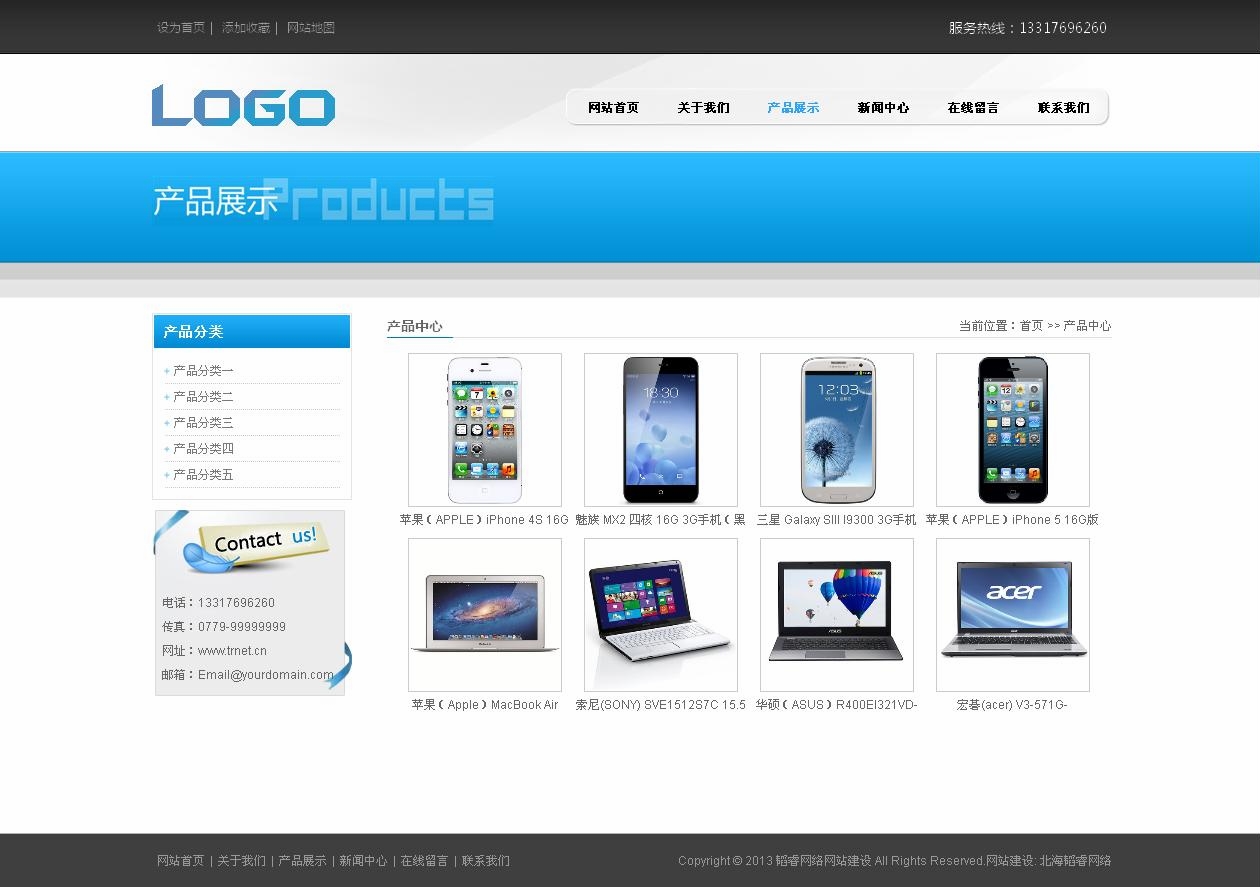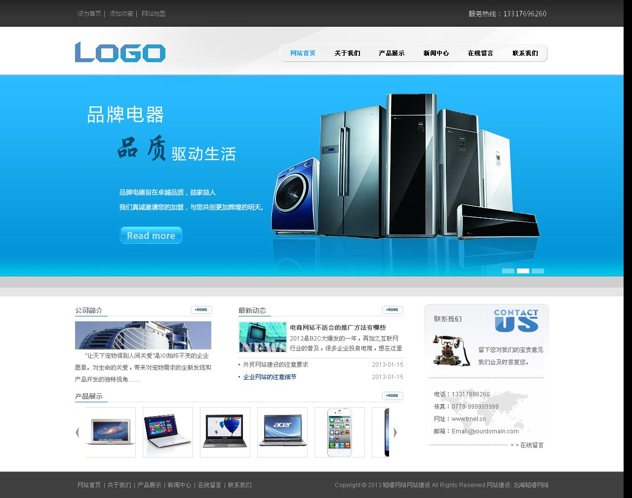 電器網(wǎng)站,藍(lán)色,簡(jiǎn)約大氣